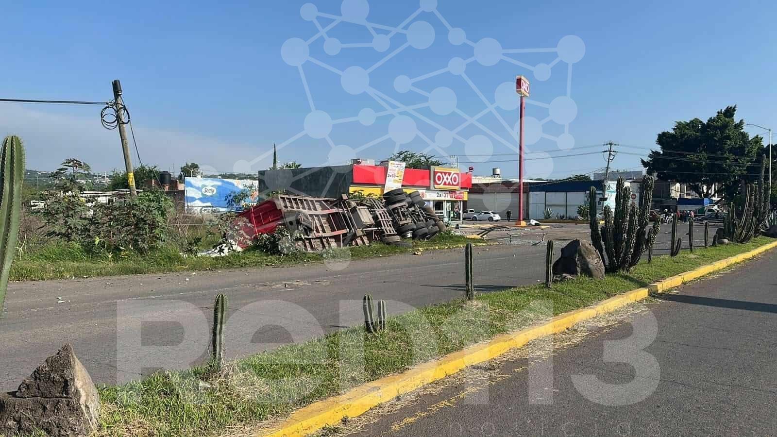 La emergencia fue atendida por patrulleros municipales, mismos que abanderaron, se encargaron del peritaje correspondiente y solicitaron una grúa para retirar el tractocamión perjudicado.