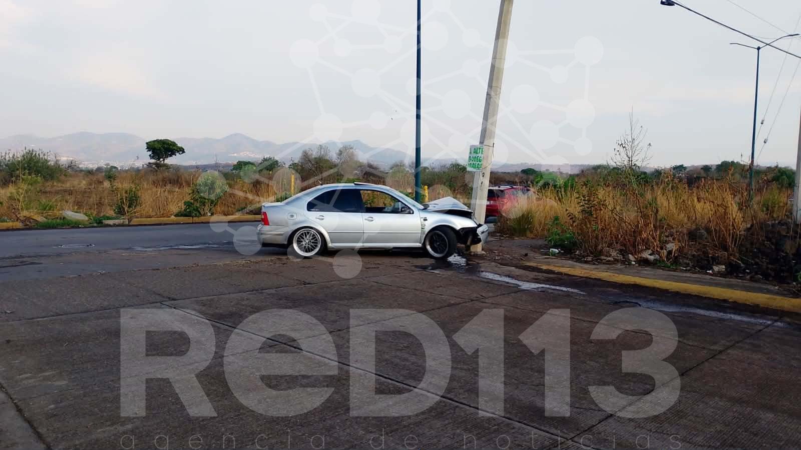 Abandonan automóvil tras fuerte choque contra poste en la avenida del C5, en Morelia