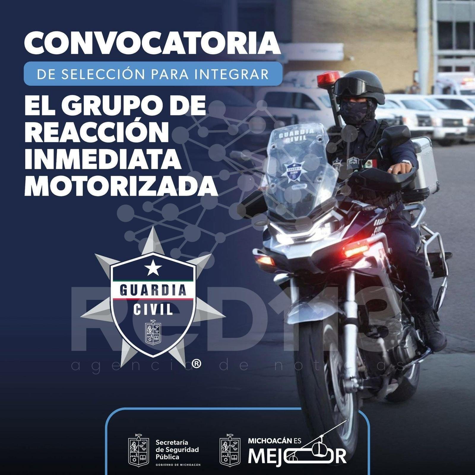 Morelia, Michoacán, 23 de enero de 2026.- Con la finalidad de continuar con los procesos de transparencia, legalidad y dignificación policial, la Secretaría de Seguridad Pública (SSP) abrió la convocatoria para formar parte del Grupo de Reacción Inmediata Motorizado (GRIM), dirigida a todos los elementos de la Guardia Civil.
