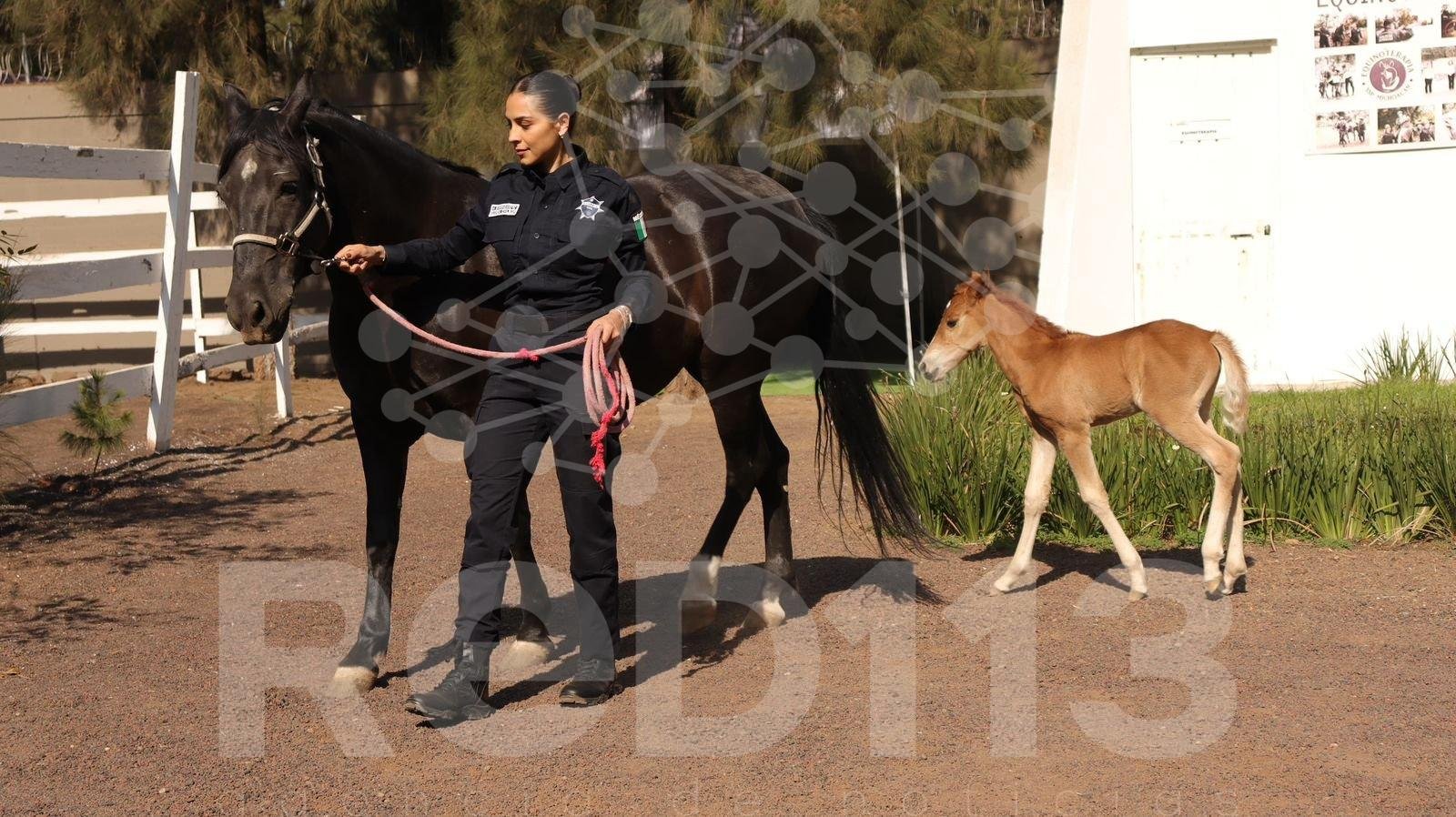 Morelia, Mich.- 13 de marzo de 2026.- La familia de la Secretaría de Seguridad Pública (SSP) crece con la llegada de una nueva integrante: Atenea, una potranca nacida en las instalaciones del agrupamiento de Equinos y Caninos de la Guardia Civil.