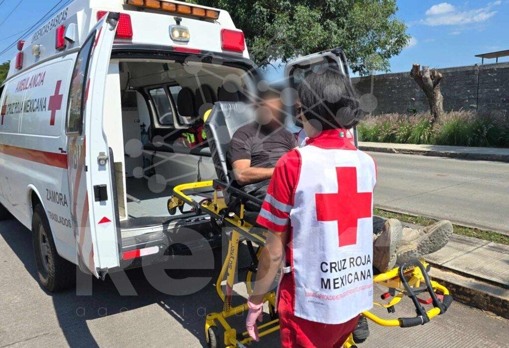 Momentos después llegaron paramédicos de la Cruz Roja quienes le brindaron los primeros auxilios a Alejandro M., de 40 años de edad, vecino del Fraccionamiento Altamira, el cual por fortuna no requirió ser llevado a un nosocomio.