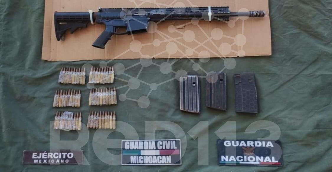 A través de un recorrido a pie tierra sobre un camino de terracería en las inmediaciones de la localidad de Paredes del Ahogado, municipio de Buenavista, los oficiales localizaron un fusil calibre 7.62 milímetros, 59 municiones del mismo calibre y tres cargadores.
