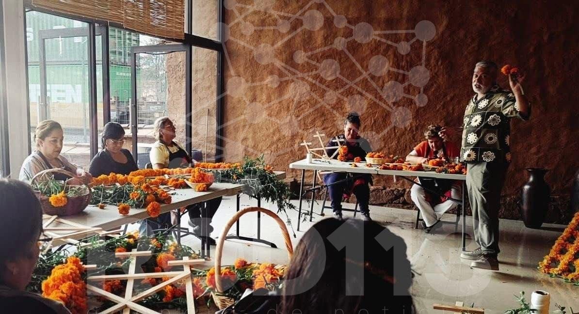 Los asistentes son guiados paso a paso para la elaboración de estos tradicionales arcos que se encuentran en los panteones el 1 y 2 de noviembre, realizados para recibir a los que se adelantaron en el camino.