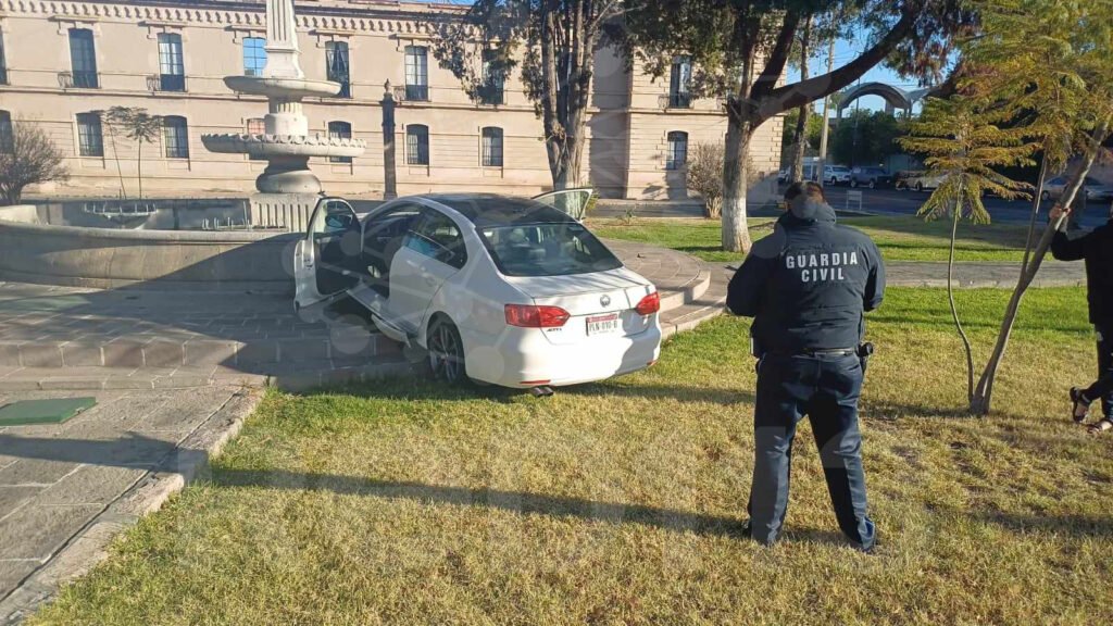 Morelia, Mich.- 17 de enero de 2024.- Una automovilista perdió el control de su unidad y se estrelló contra una fuente ubicada frente al cuartel de la 21 Zona Militar, en la ciudad de Morelia, trascendió la labor noticiosa.