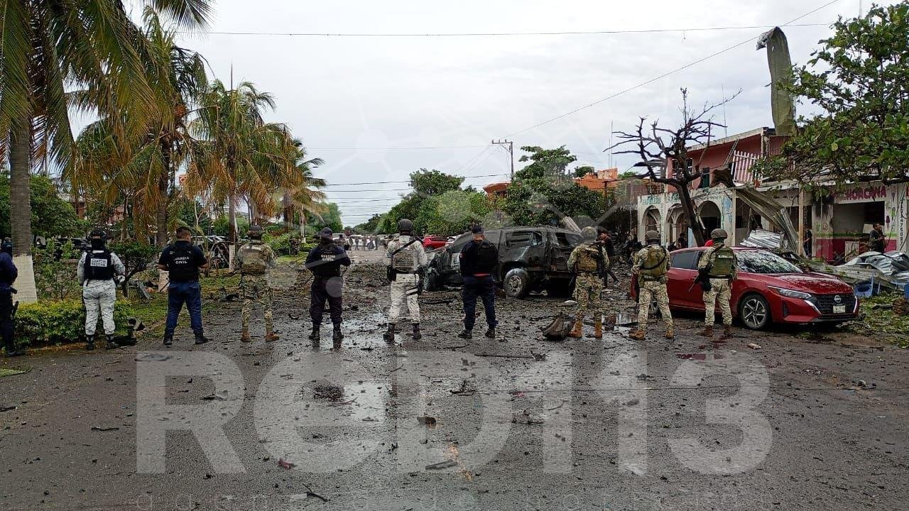 Coahuayana, Michoacán, 6 de diciembre de 2025.- La Guardia Nacional, la Secretaría de la Defensa Nacional, la Secretaría de Marina y la Secretaría de Seguridad Pública estatal, mantienen la seguridad y el control del municipio de Coahuayana, ante un artefacto explosivo accionado.