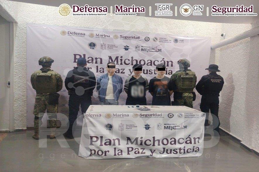 Derivado de los operativos del Plan Michoacán por la Paz y la Justicia, elementos de la Secretaría de la Defensa Nacional (Defensa), Guardia Nacional (GN), en coordinación con la Secretaría de Marina (Semar), Secretaría de Seguridad y Protección Ciudadana (SSPC) y Fiscalía General de la República (FGR), junto con autoridades locales, detuvieron a cuatro personas, aseguraron dos armas de fuego, 120 cartuchos, cinco cargadores y un vehículo.