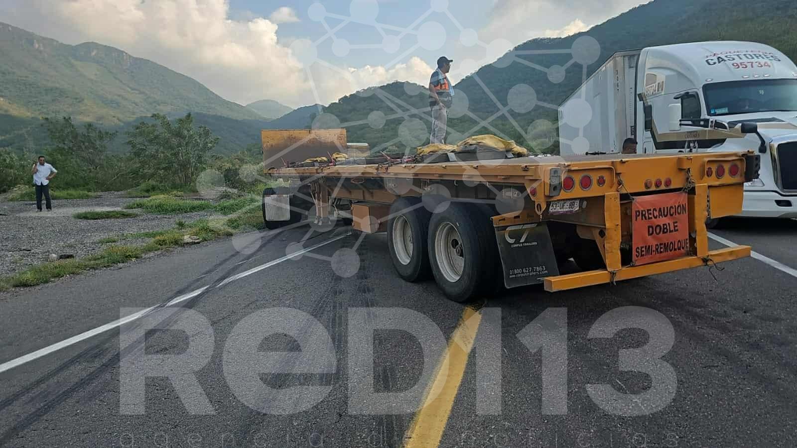 La Unión, Guerrero.- 28 de septiembre de 2025.- La tarde de este domingo, un tráiler con plataforma chocó contra una camioneta en la autopista Siglo XXI. Luego de la colisión las unidades se proyectaron hacía un desnivel, mientras que el remolque acabó obstruyendo la vialidad.
