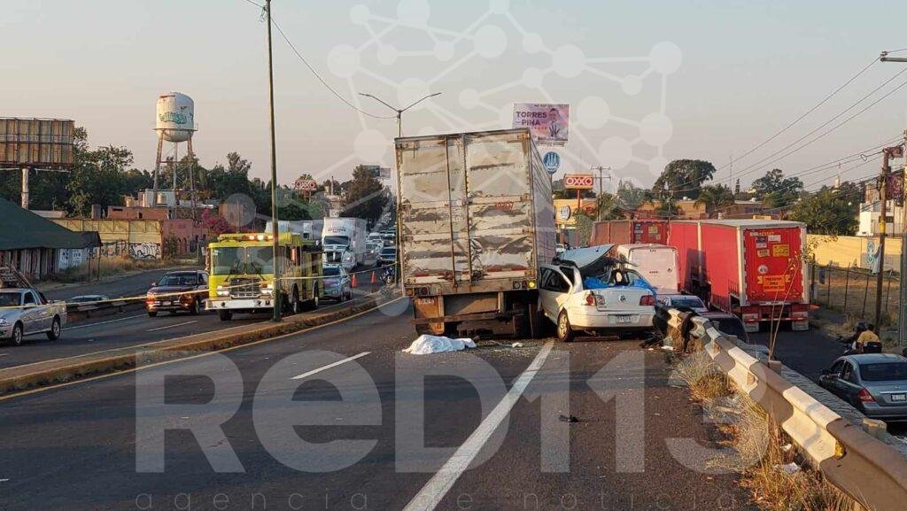 Morelia, Mich.- 30 de abril de 2024.- Una persona muerta y tres lesionados fue el saldo que dejó el choque de un auto compacto contra la retaguardia de un tráiler, esto sobre el puente de Calzada La Huerta, salida a Pátzcuaro, cerca de la desviación a la Tenencia Morelos, trascendió en la cobertura de la noticia.