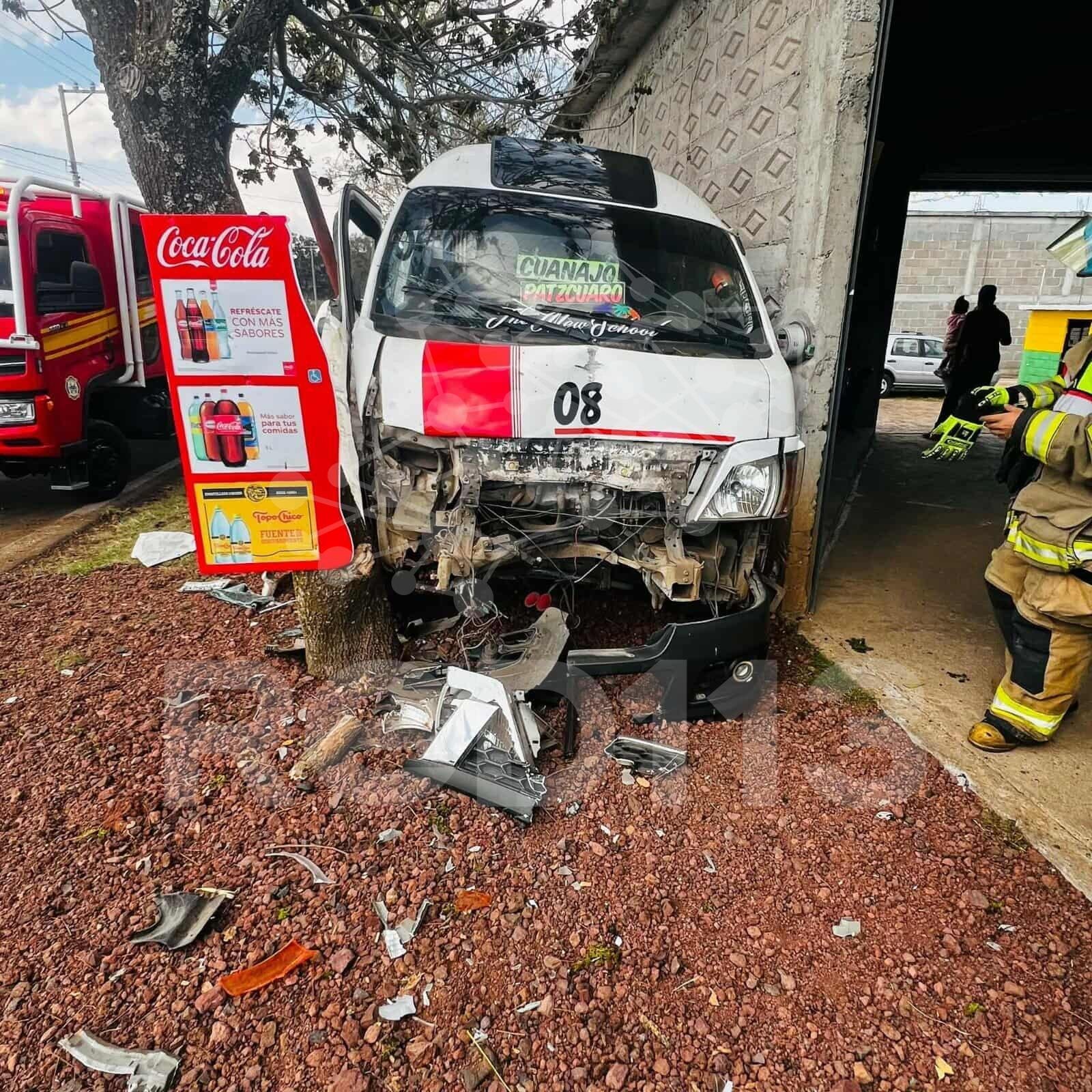 Choca combi de la Ruta Cuanajo contra árbol en la Pátzcuaro-Morelia; hay 2 heridos