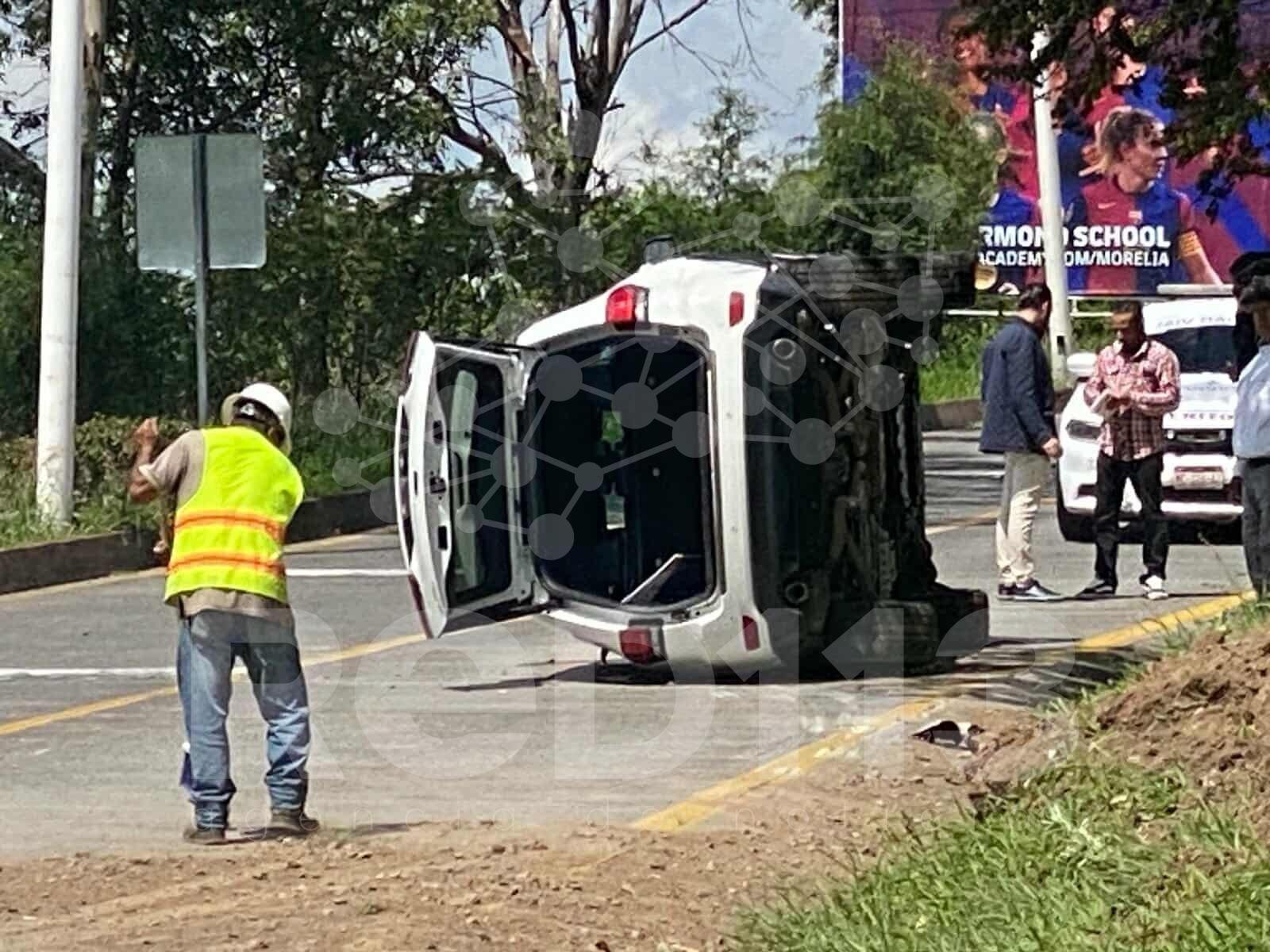 Choque de auto y combi de la Ruta Gris deja dos heridos, Morelia
