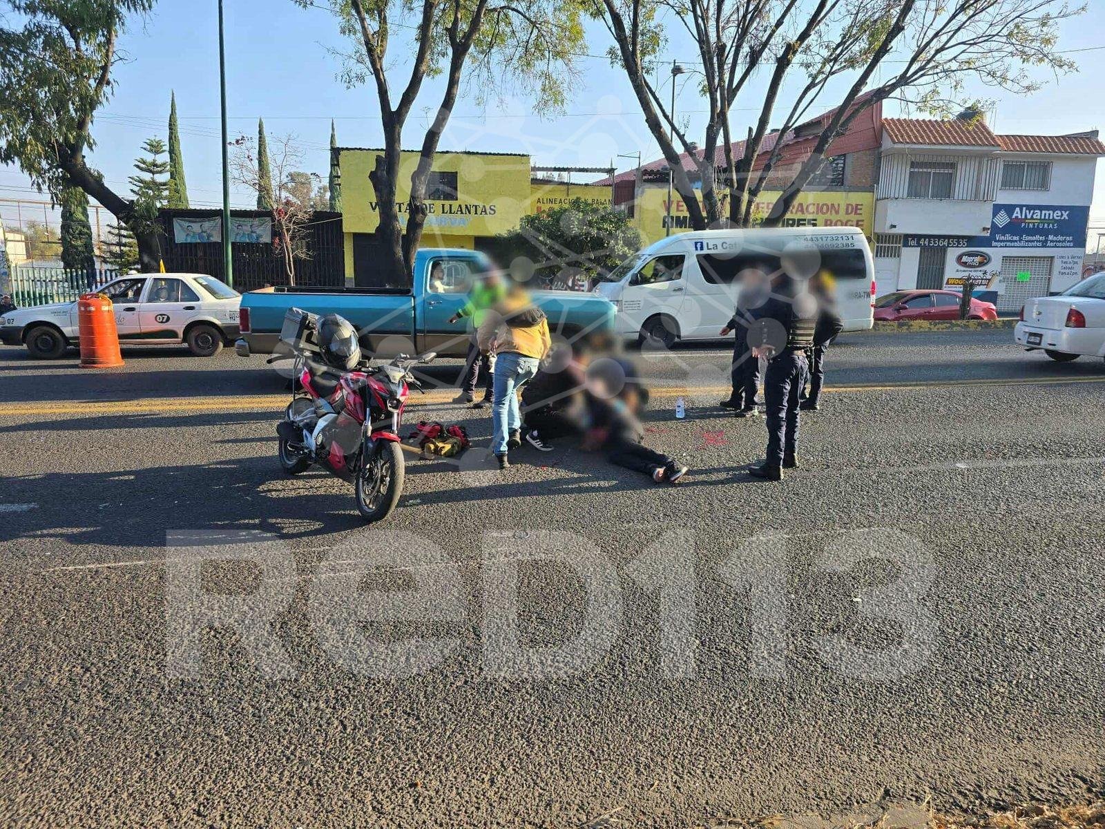 Morelia, Mich.- Viernes 13 de febrero de 2026.- Un joven motociclista resultó gravemente lesionado luego de chocar contra la parte lateral derecha trasera de un automóvil sobre la avenida Madero Poniente, en Morelia, informaron fuentes policiales.