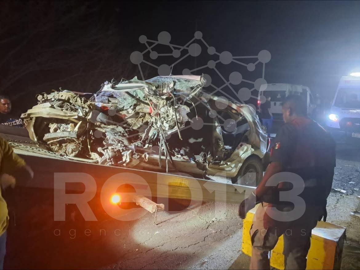 El aparatoso percance ocurrió durante la noche de ayer sábado a la altura del kilómetro 178+800 y fue reportado al número de emergencias por varias personas. Unos patrulleros y paramédicos acudieron a la escena y confirmaron el deceso de los ocupantes de un Nissan March color blanco con placas Z77BJF, de la Ciudad de México.