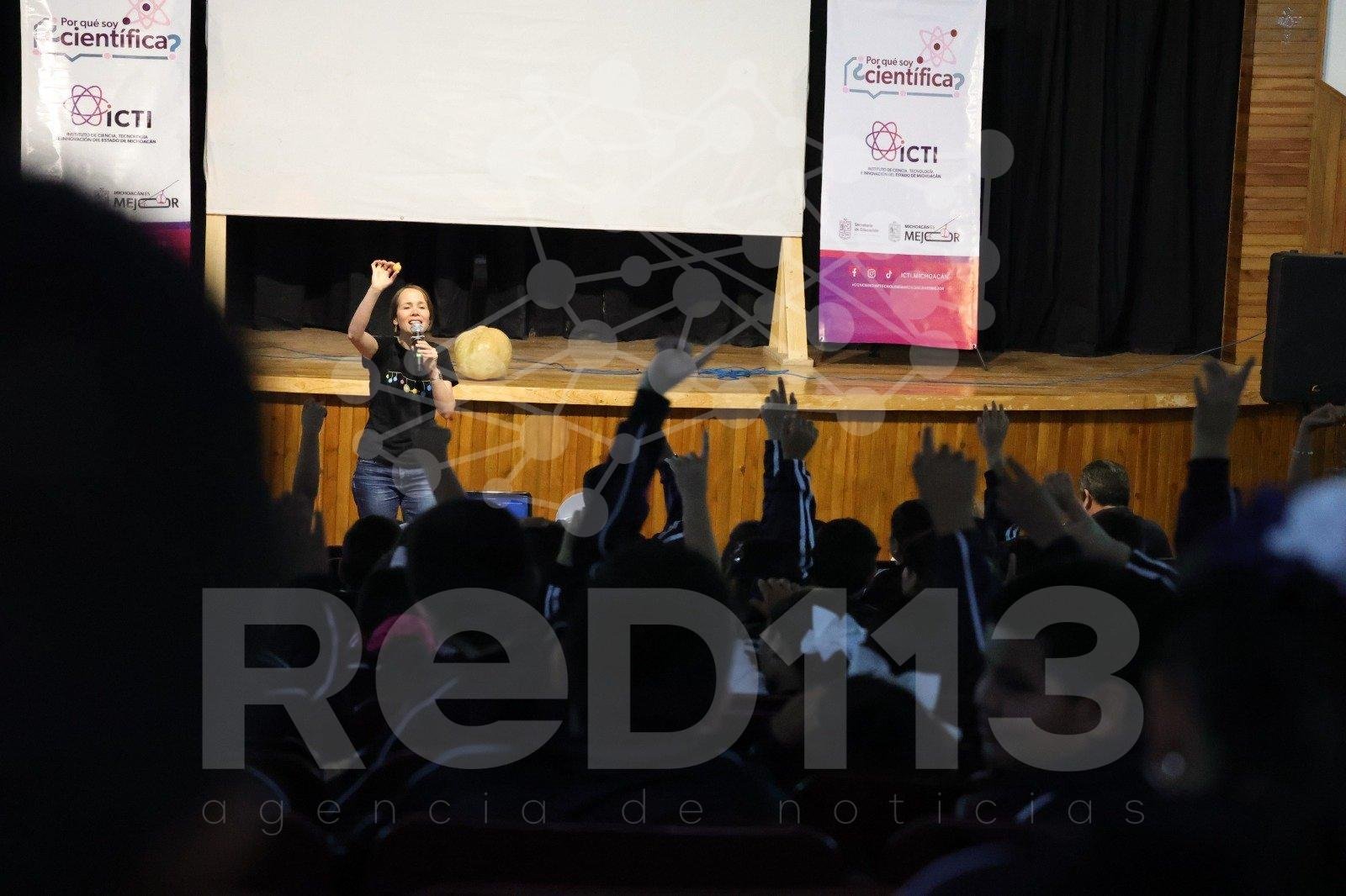 Acuitzio, Michoacán, 23 de octubre de 2025.- Con el propósito de despertar el interés por la ciencia y la tecnología entre las infancias michoacanas, el Instituto de Ciencia, Tecnología e Innovación (ICTI) y la Secretaría de Educación en el Estado (SEE) llevaron al teatro Coatepec del municipio de Acuitzio, el programa ¿Por qué soy científica?, que busca visibilizar el papel de las mujeres en la ciencia e inspirar a nuevas generaciones a seguir sus pasos.