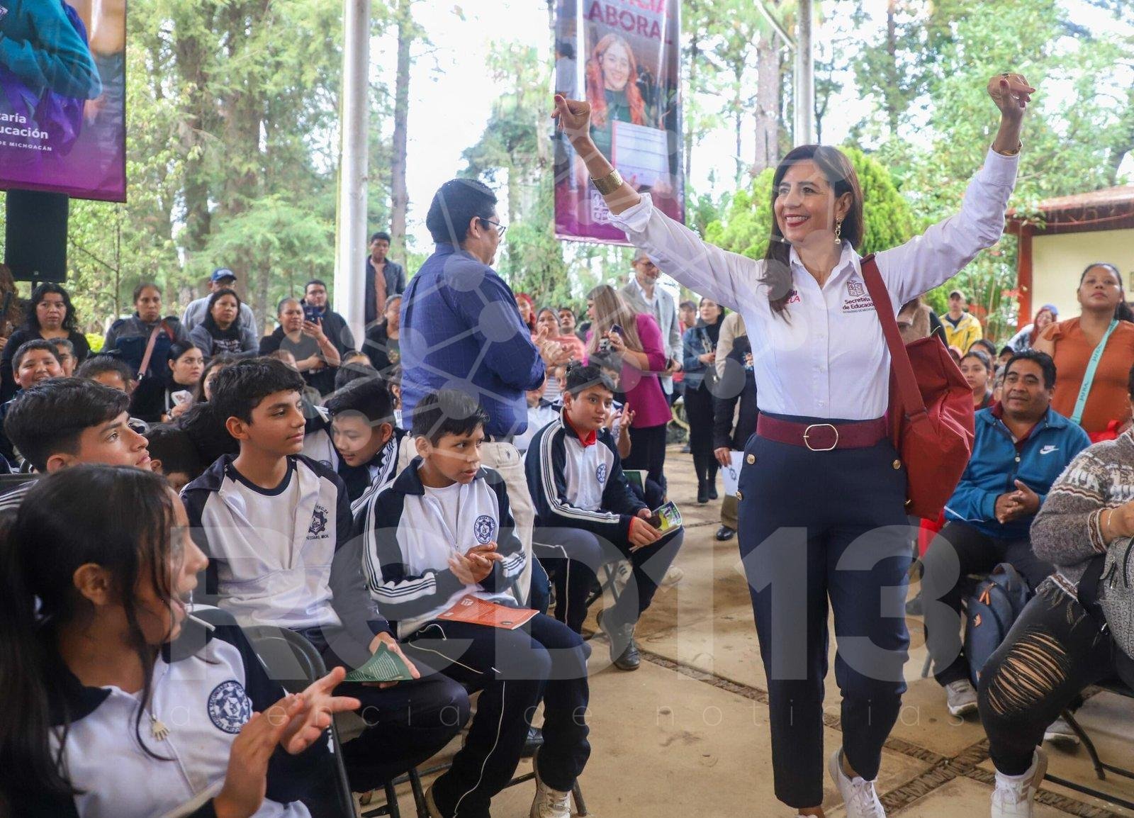 «Con apoyo del gobernador Alfredo Ramírez Bedolla se lleva a cabo la transformación educativa en Michoacán. Estaremos llevando 204 mil pares de tenis a las secundarias, obras, equipamiento, mobiliario, y con el respaldo de la presidenta Claudia Sheinbaum Pardo llegarán más de 200 mil becas para secundaria y el año que viene para todos los de cuarto, quinto y sexto de primaria», recalcó.