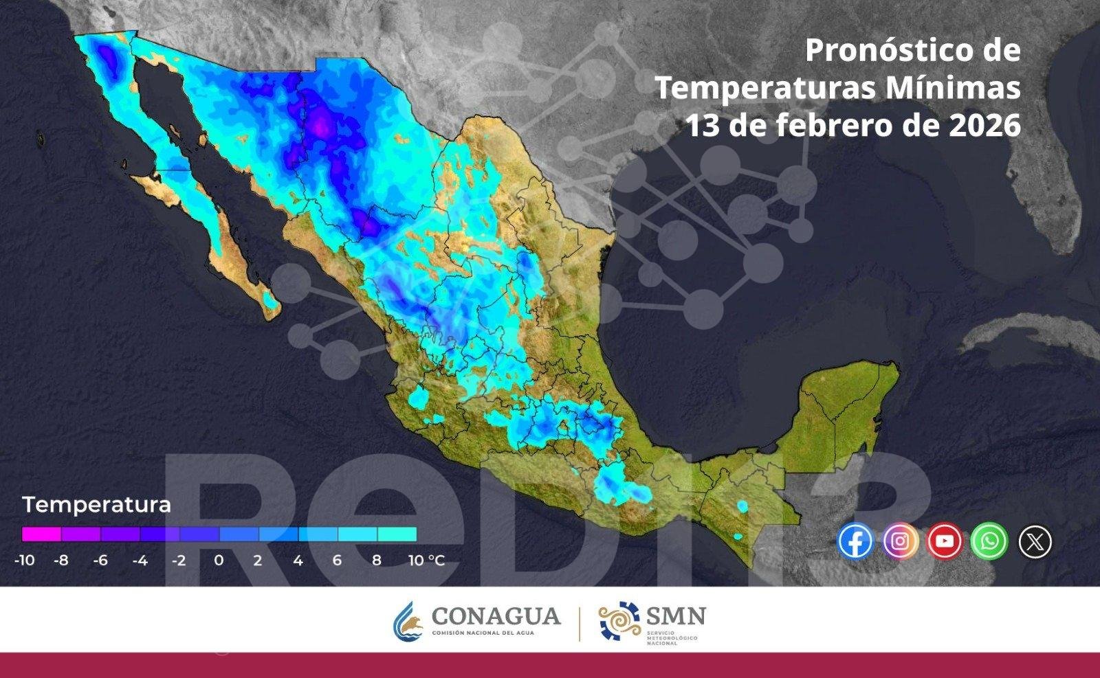 De acuerdo con el pronóstico del Servicio Meteorológico Nacional (SMN), la interacción del Frente Frío número 34 con una vaguada polar, provocará un marcado descenso de la temperatura, vientos fuertes, lluvias y chubascos en zonas del noroeste y norte del territorio nacional, por lo que se exhorta a la ciudadanía a implementar medidas de autocuidado, mantenerse atenta a los reportes meteorológicos y a las indicaciones de las autoridades de Protección Civil.