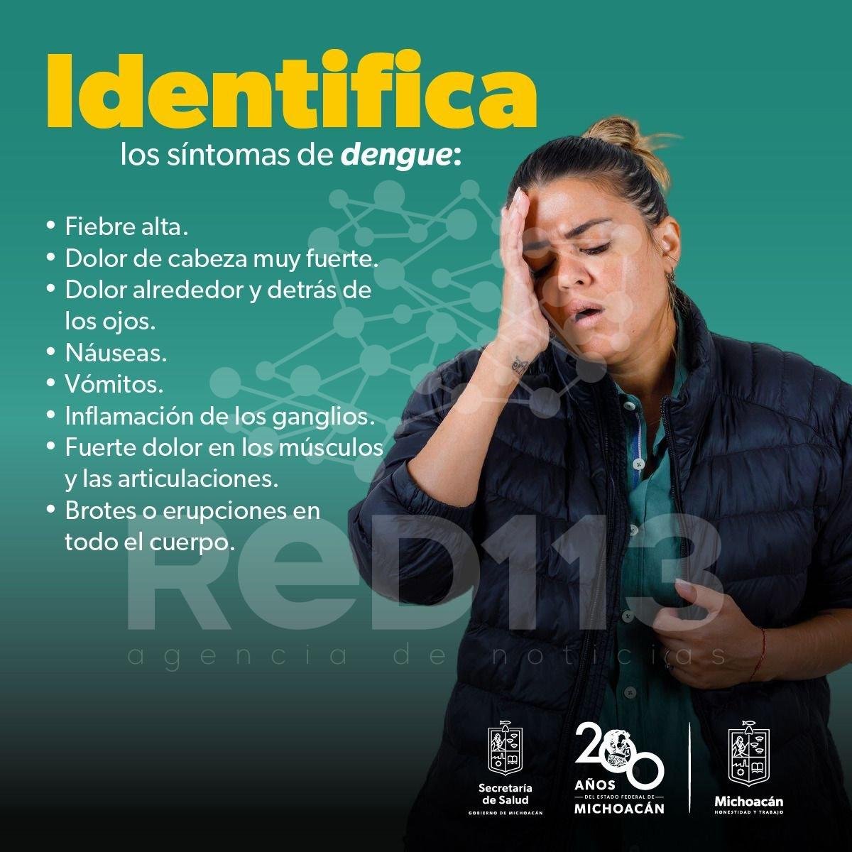 Morelia, Michoacán, 16 de noviembre de 2024.- Atención. Si presentas fiebre; dolor intenso de cabeza, huesos o detrás de los ojos; náuseas y debilidad, podría ser dengue, alertó la Secretaría de Salud de Michoacán (SSM).