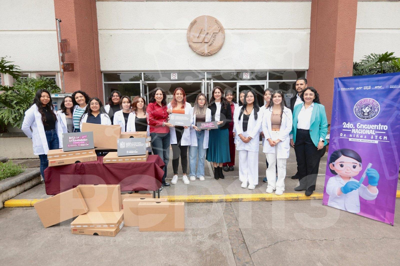 Morelia, Michoacán, 24 de junio de 2025.- Con la entrega de equipos de cómputo, el Instituto de Educación Media Superior y Superior del Estado de Michoacán (Iemsysem) reconoció a 16 estudiantes destacadas de la Universidad Tecnológica de Morelia (UTM), provenientes de los programas de Ingeniería en Biotecnología, Tecnologías de la Información e Innovación Digital, Diseño y Moda Industrial, Energía y Desarrollo Sostenible, Mecatrónica y Enfermería Bilingüe.