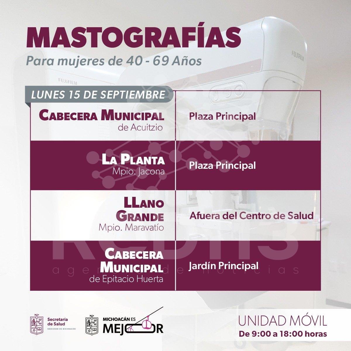Es así que del 2 al 31 de octubre se instalarán diversos puestos de vacunación en los municipios de Aguililla, Apatzingán, Coalcomán, Tepalcatepec, Jacona, Zamora, La Piedad, Acuitzio, Ario y Carácuaro.
