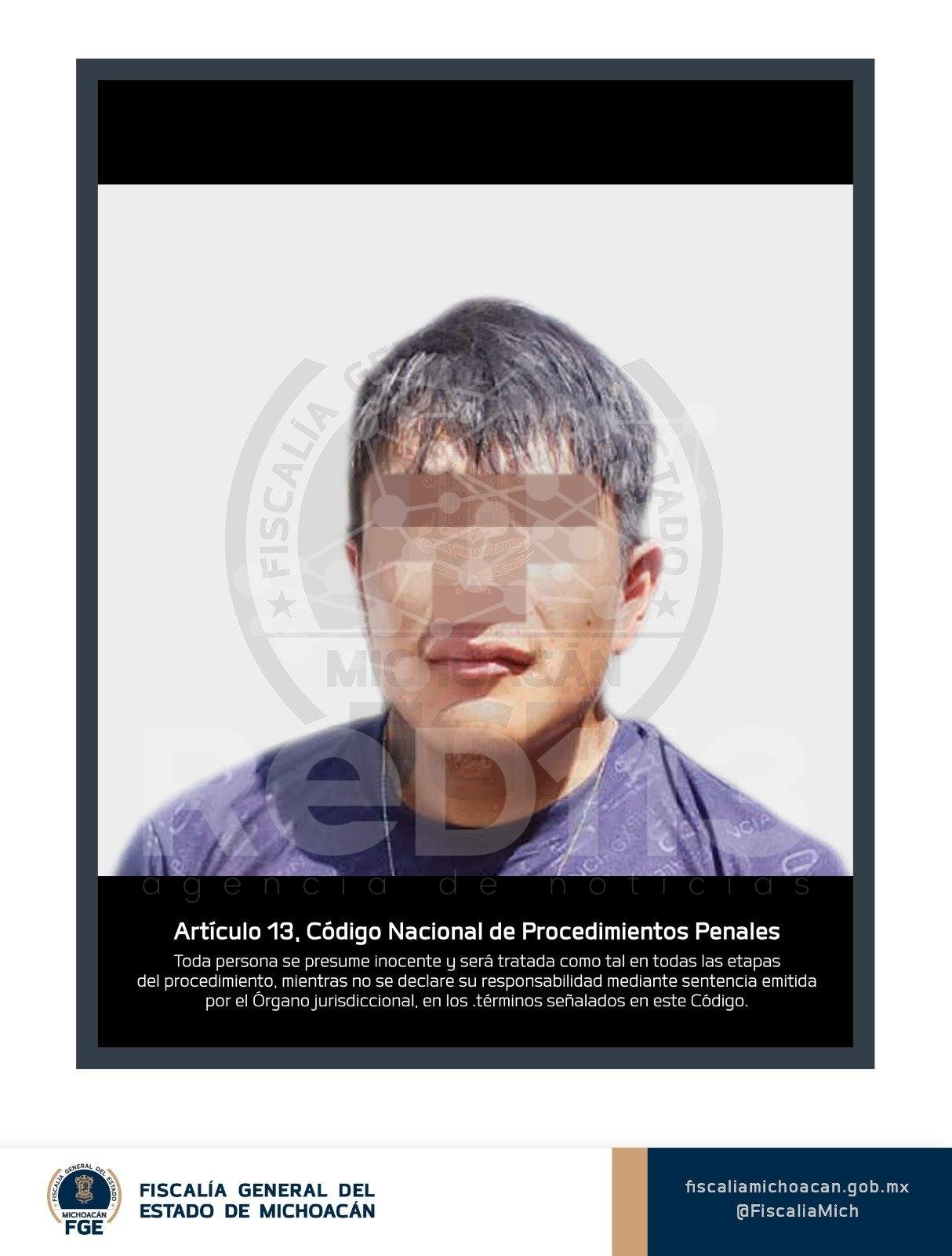 Morelia, Mich.- 4 de noviembre de 2024.- La Fiscalía General del Estado de Michoacán (FGE), a través de la Unidad Especializada de Investigación de Homicidio, cumplimentó orden de aprehensión en contra de Francisco Daniel “N”, por su posible relación en el delito de homicidio calificado, cometido en el municipio de Tarímbaro.