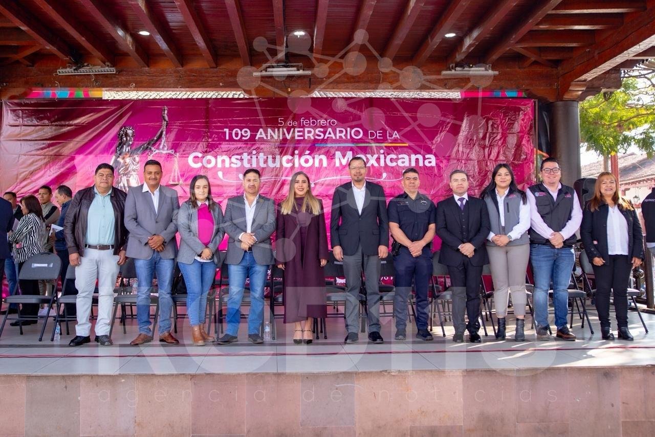 Santa Clara del Cobre, Michoacán.- En el marco del 109 Aniversario de la promulgación de la Constitución Política de los Estados Unidos Mexicanos, la presidenta municipal de Salvador Escalante, Dayana Pérez Mendoza, encabezó el acto cívico conmemorativo, reafirmando la importancia de este documento fundamental que da rumbo a la vida pública del país y garantiza los derechos, libertades y obligaciones que unen a la sociedad mexicana.
