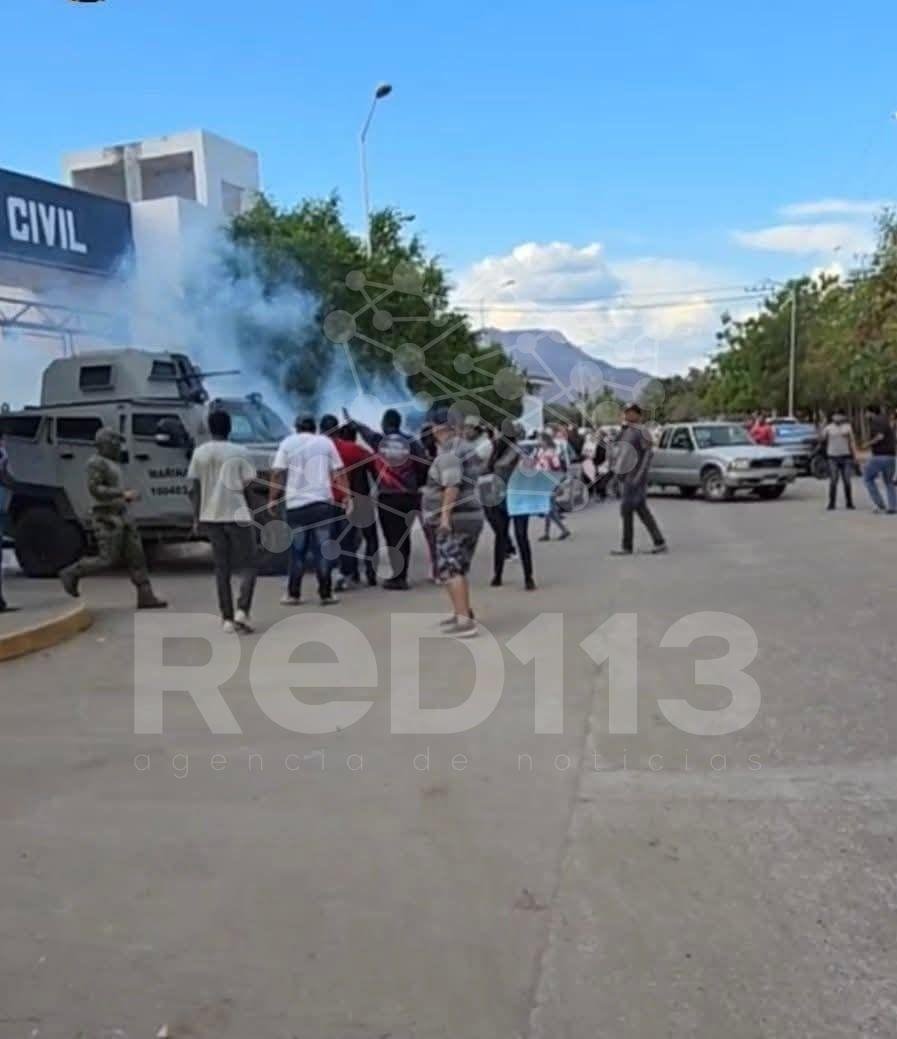 Ante el intento de bloqueo y la concentración de los manifestantes, personal naval habría utilizado gas lacrimógeno para dispersar a la multitud y permitir el repliegue de las fuerzas de seguridad.