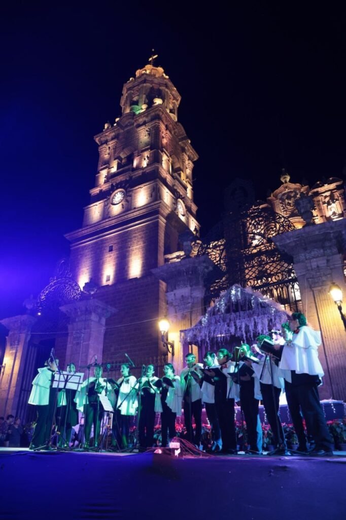 Morelia, Michoacán; 17 de diciembre de 2023.- Miles de morelianos y morelianas vivieron un momento mágico durante la segunda Macroposada que organizó el Ayuntamiento y la Arquidiócesis de Morelia, la cual reunió a miles de familias en el Centro Histórico.