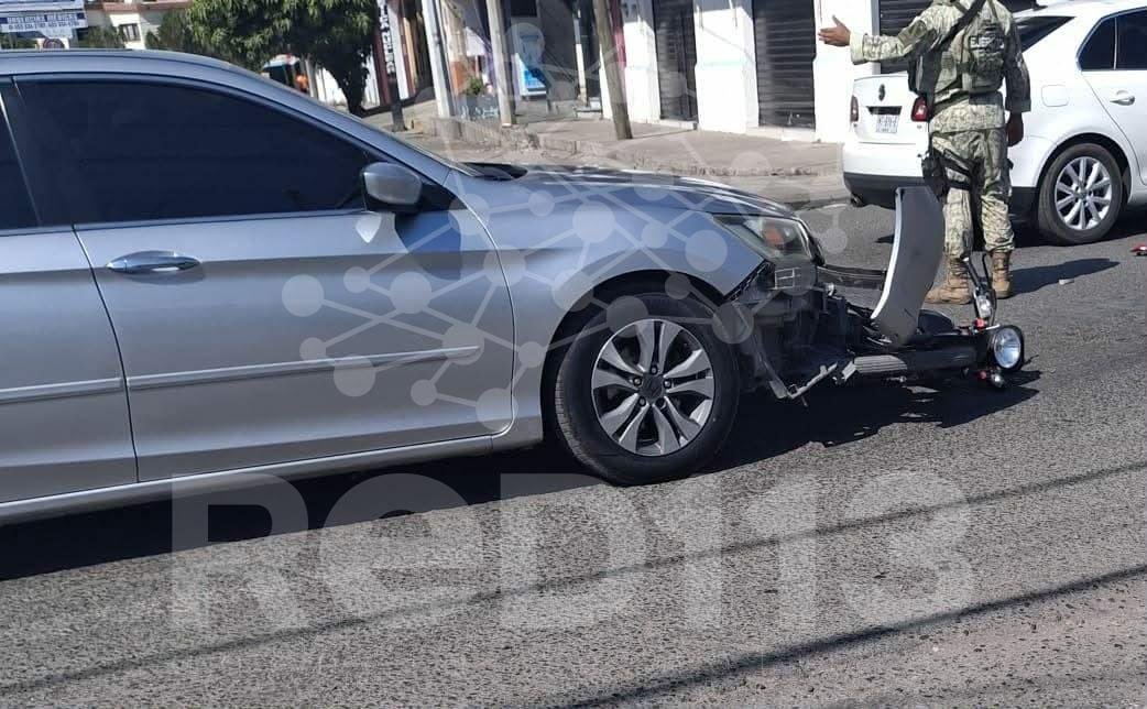En este punto, un automóvil Honda Accord, color gris, con placas PHP-478-D, colisionó contra una motocicleta Italika, color negro, la cual quedó atrapada bajo la parte frontal del vehículo.