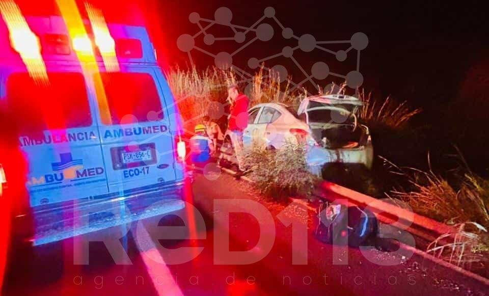 La Unión, Guerrero.- 13 de noviembre de 2025.- Una pareja resultó levente herida al sufrir un accidente, en el que su auto se salió de la carpeta asfáltica, mientras circulaban por la autopista Siglo XXI.