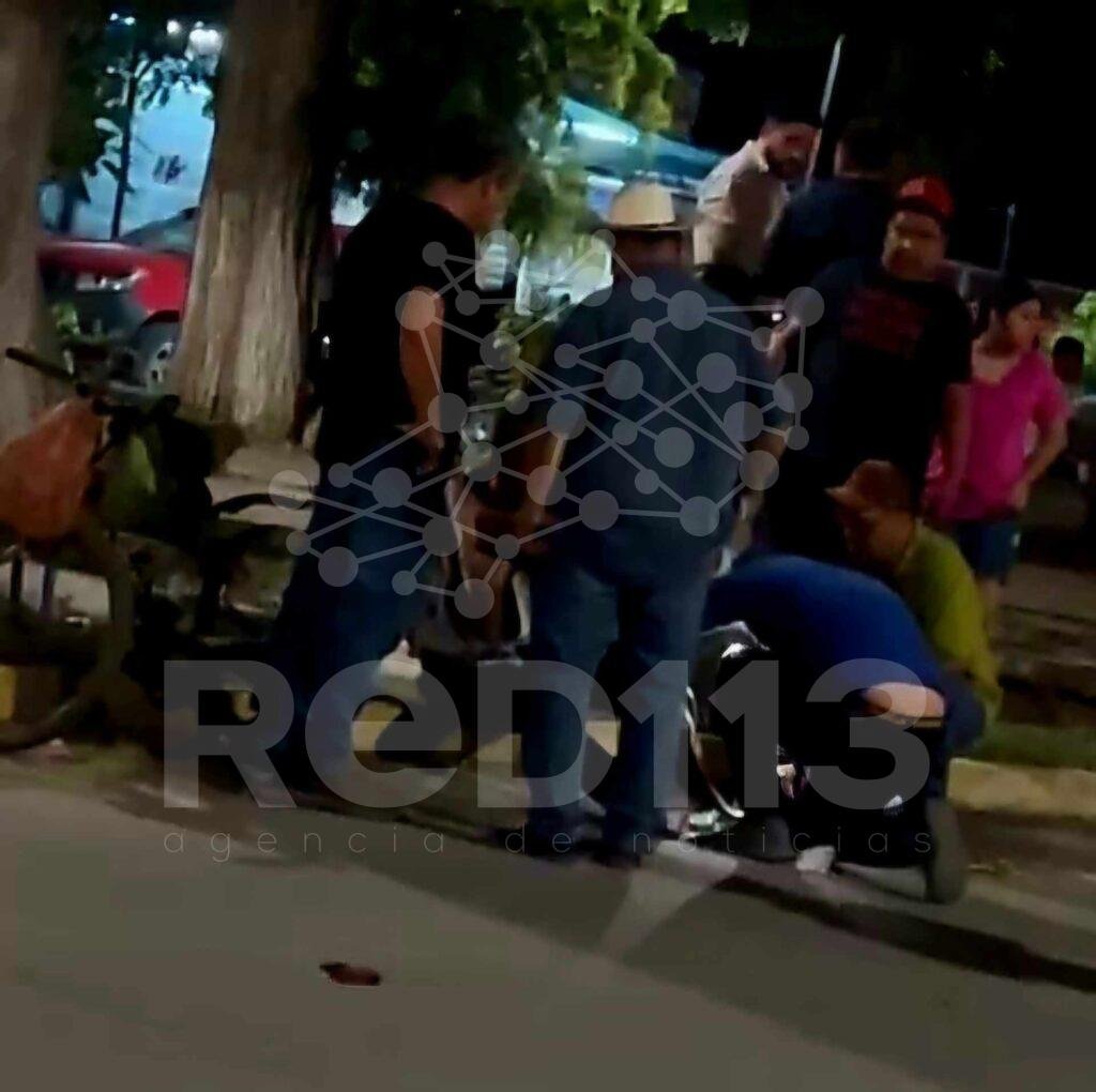 Apatzingán, Mich.- 22 de octubre de 2024.-Un hombre de la tercera edad y una mujer joven resultaron lesionados de consideración, tras el choque de una motocicleta y una bicicleta, en la zona Centro de esta ciudad de Apatzingán.