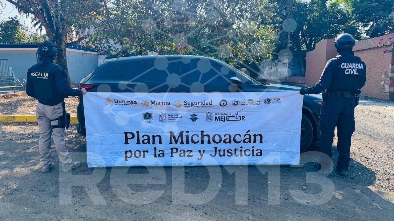 Durante estas acciones operativas, en Morelia, en la colonia Margarita Maza de Juárez, fue detenido Paulo César “N”, de 43 años de edad; en el lugar se aseguraron 2 armas largas y cartuchos, sustancia con las características de narcótico, teléfonos celulares, documentación relacionada con el cobro de cuotas a pipas y camiones de bancos de arena, 3 vehículos, una motocicleta, una cuatrimoto y un chaleco táctico con logotipos de FGE y FGR.