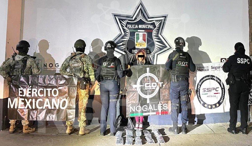 -En Nogales, elementos de SSPC, Ejército Mexicano y Policía Municipal detuvieron a una mujer de nacionalidad estadounidense, le aseguraron cinco kilos de pastillas de fentanilo y un vehículo con reporte de robo.