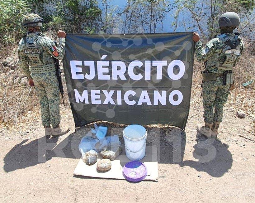 -En Culiacán, en la colonia Las Brisas, elementos del Ejército Mexicano localizaron una cubeta con seis kilos de goma de opio.