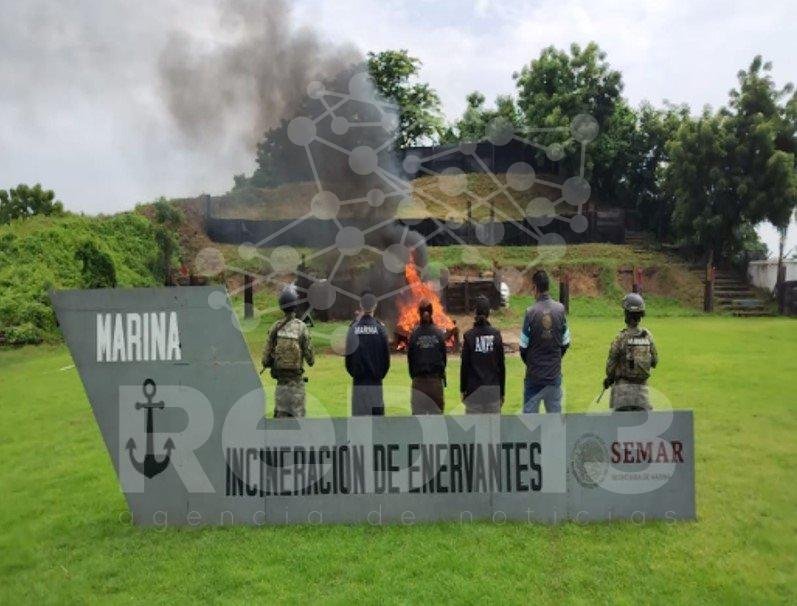 En Lázaro Cárdenas, Michoacán, en el Mando Naval elementos de la Semar y FGR llevaron a cabo la incineración, de 491.5 kilos de clorhidrato de cocaína.