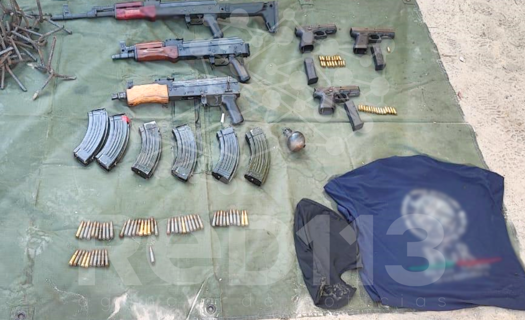 En San Felipe, se detuvo a una persona, se aseguraron seis armas de fuego, nueve cargadores, 84 cartuchos, una granada de fragmentación, 19 estrellas ponchallantas y un vehículo con reporte de robo.