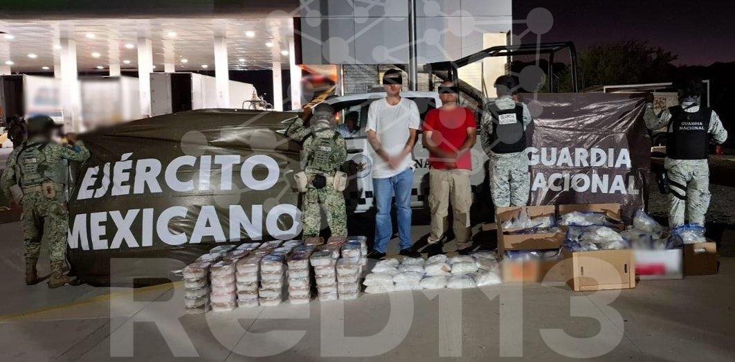 En Tecate, se detuvo a dos personas, se aseguraron 327 kilos de metanfetamina y un tractocamión.