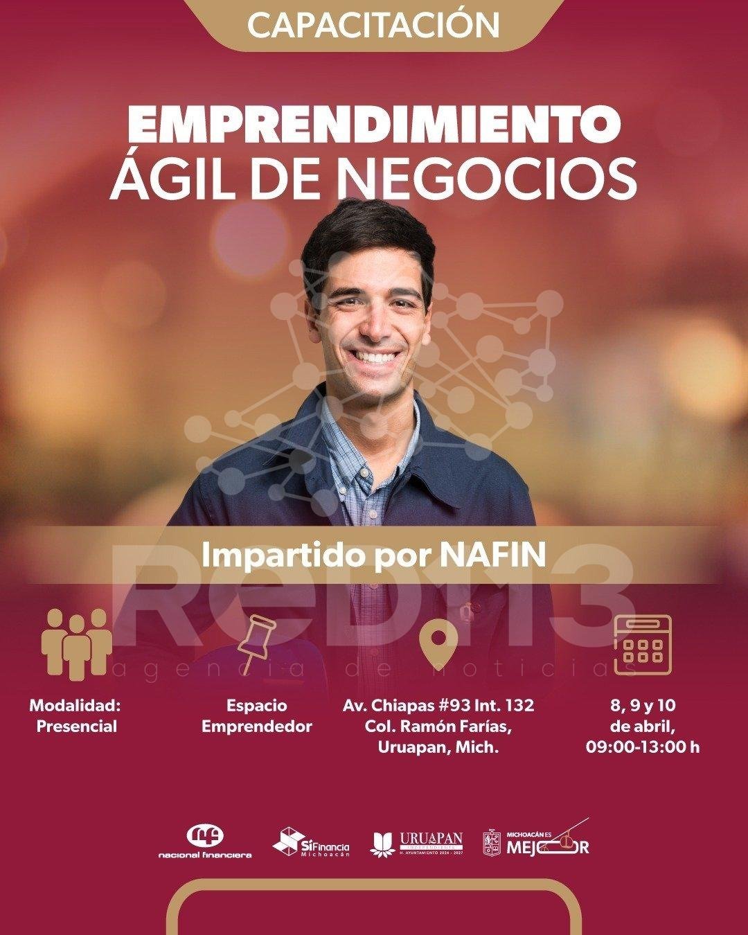 Morelia, Michoacán, 7 de abril de 2026.- El Sistema Integral de Financiamiento para el Desarrollo de Michoacán (Sí Financia), en coordinación con Nacional Financiera (Nafin), impartirá el programa de profesionalización “Emprendimiento ágil de negocios”, dirigido a empresas y personas emprendedoras de Uruapan, informó el director general de la institución, Gabriel Gutiérrez Aviña.