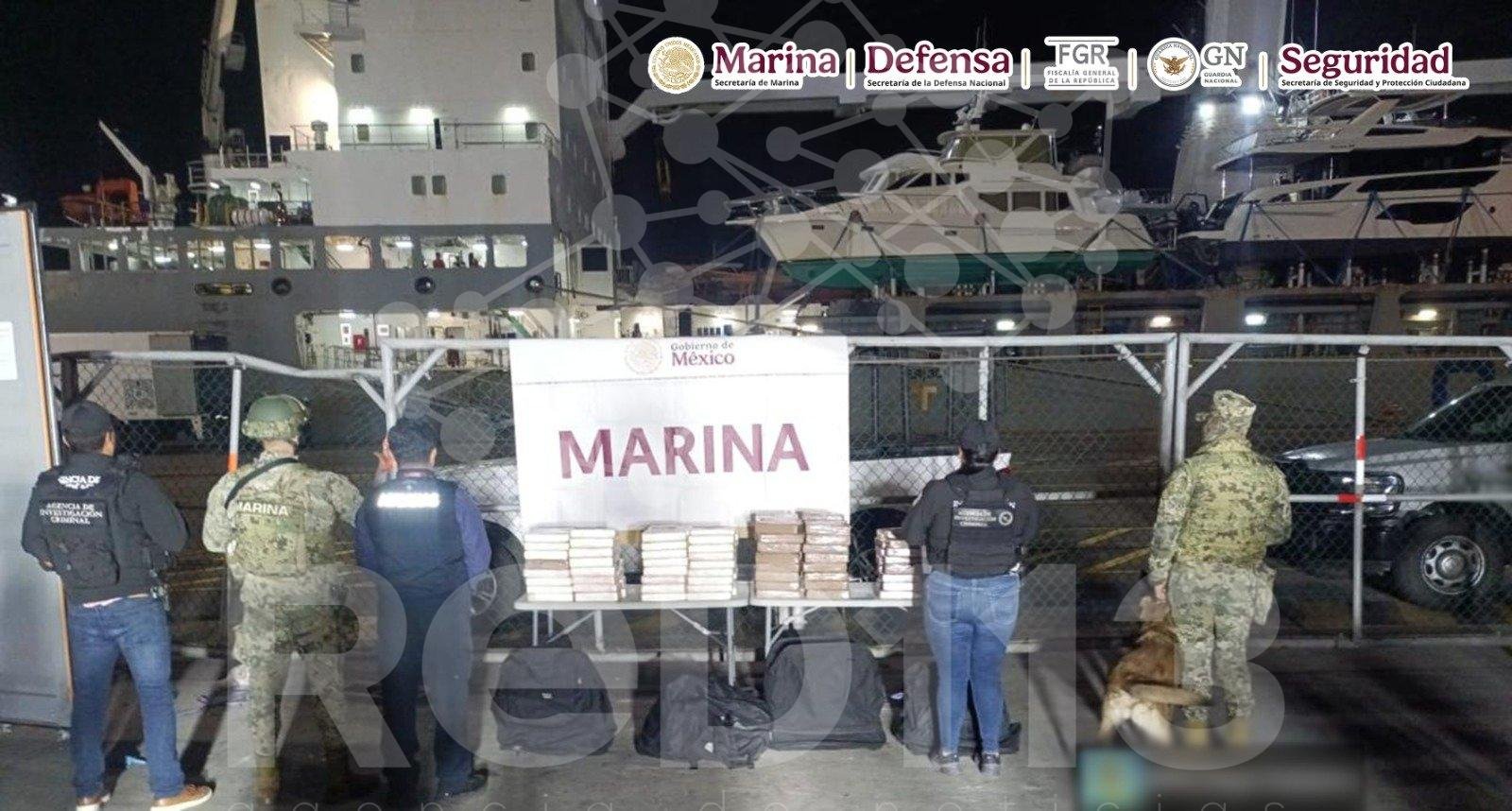 Como parte de las acciones para evitar el ingreso y trasiego de sustancias ilícitas, elementos de la Secretaría de Marina (Semar) a través de la Armada de México, en coordinación con Secretaría de la Defensa Nacional (Defensa), Fiscalía General de la República (FGR), Guardia Nacional (GN) y Secretaría de Seguridad y Protección Ciudadana (SSPC) aseguraron 188 paquetes con un peso aproximado de 200 kilos de cocaína, en las instalaciones de la Aduana de Ensenada, en Baja California.