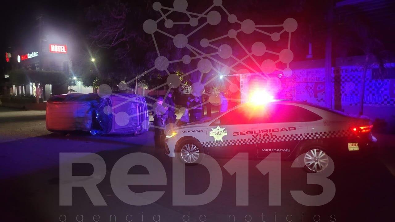 Apatzingán, Mich.- 20 de enero de 2026.- La madrugada de este martes, un hombre resultó lesionado al volcar la camioneta que tripulaba, en la colonia José María Morelos de Apatzingán. Presuntamente el afectado trataba de dar alcance a unos tipos que habían robado a mano armada una motocicleta.