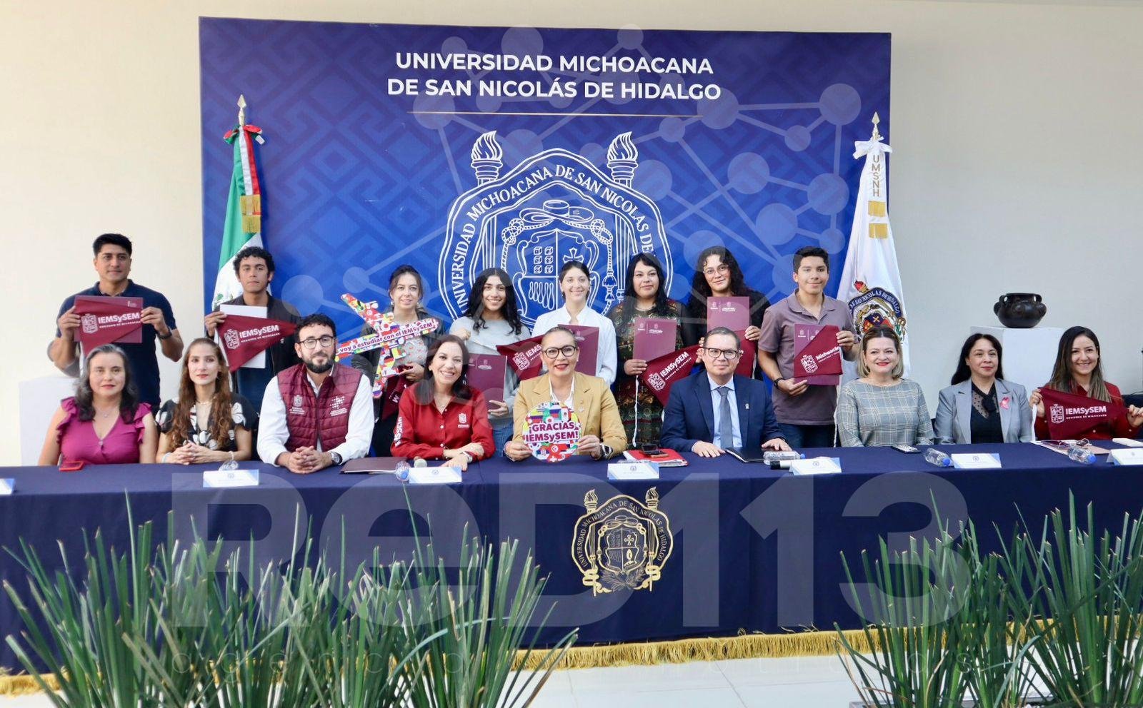 Morelia, Michoacán, 16 de octubre del 2024.- El Instituto de Educación Media Superior y Superior del Estado de Michoacán (Iemsysem) entregó ocho becas de movilidad estudiantil para alumnas y alumnos de la Universidad Michoacana de San Nicolás de Hidalgo (UMSNH).