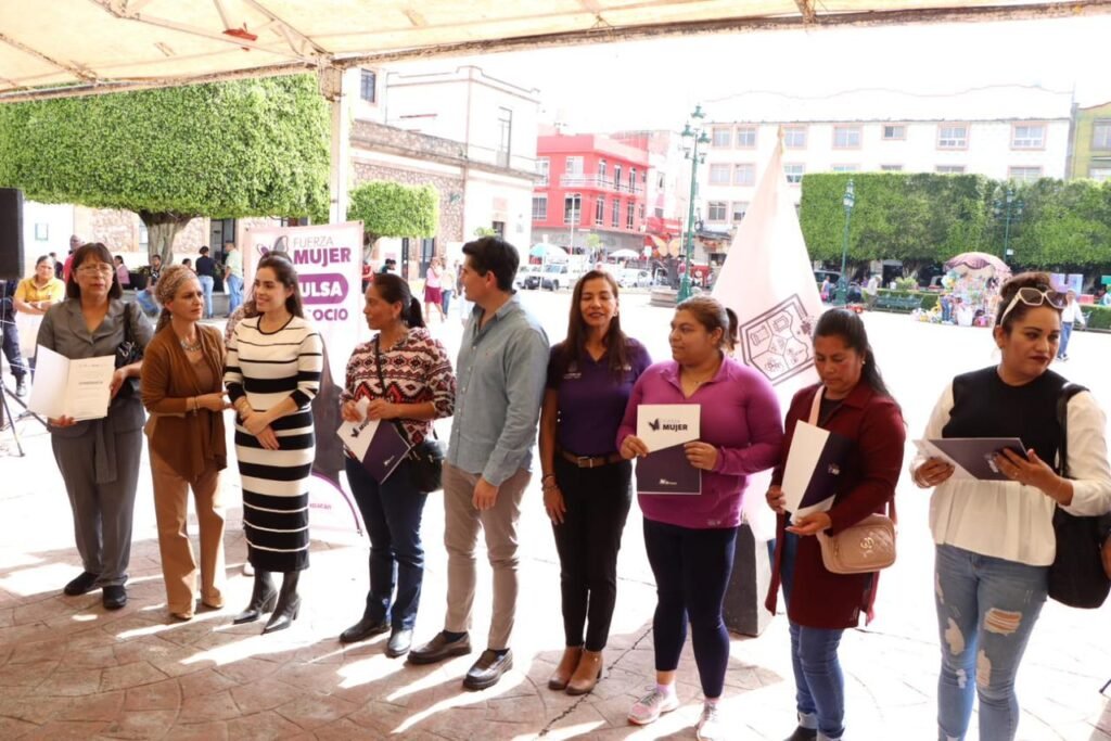 Zitácuaro, Mich., a 4 de octubre de 2023.- A fin de impulsar el emprendimiento en mujeres zitacuarenses, el presidente municipal Juan Antonio Ixtláhuac, entregó este miércoles, apoyos económicos a beneficiarias del programa Fuerza Mujer, el cual cuenta con el acompañamiento técnico, financiero y de capacitación a emprendedoras locales, destinado a través de Sí Financia, dependencia estatal.
