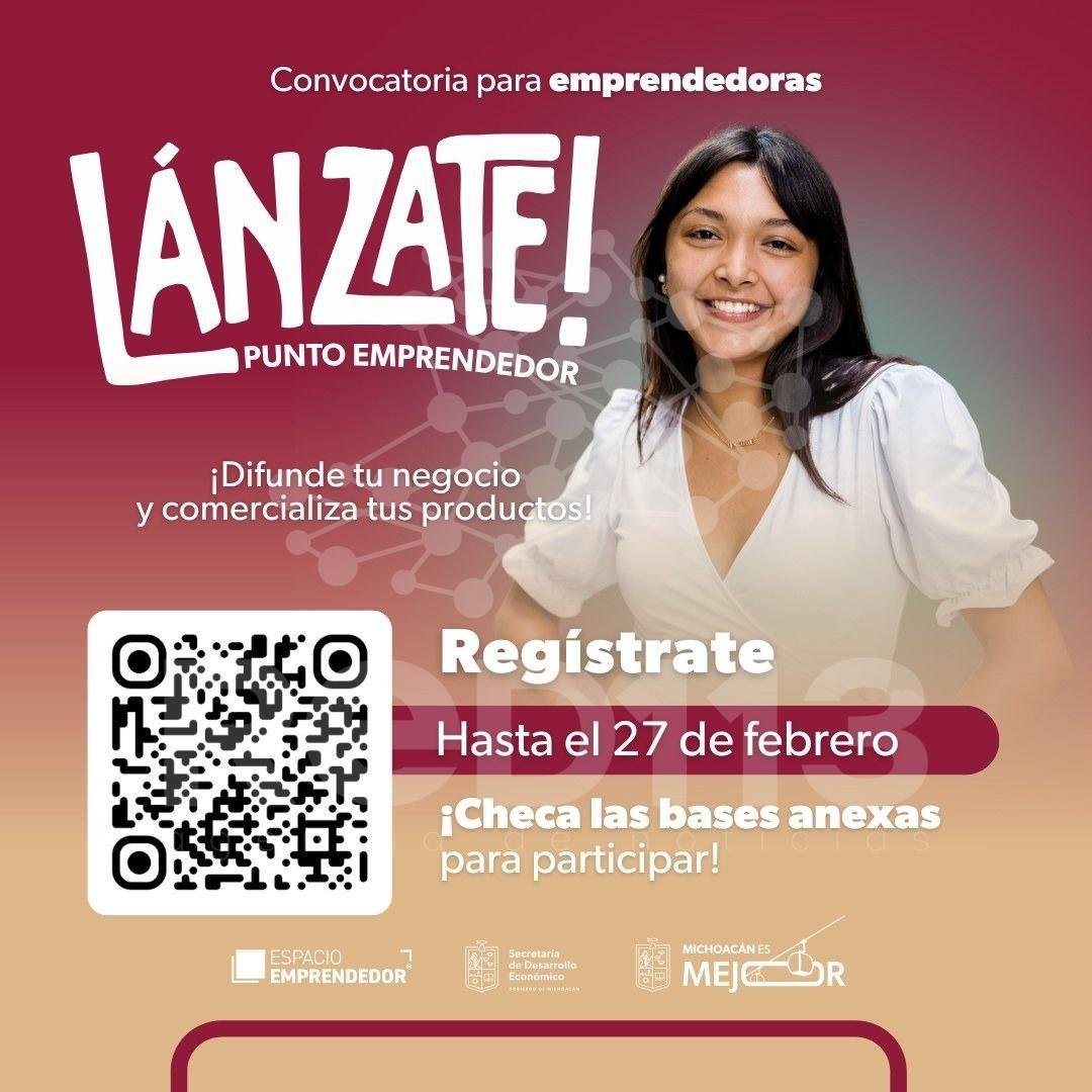 Morelia, Michoacán, 13 de febrero de 2026.- Si eres mujer emprendedora y tienes productos listos para salir al mercado, la Secretaría de Desarrollo Económico (Sedeco) te invita a participar en “Lánzate: Punto Emprendedor”, una iniciativa creada para exhibir, vender y fortalecer proyectos en un entorno profesional y con clientes reales.