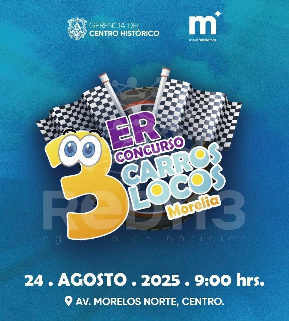 Morelia, Michoacán; 20 de agosto de 2025.- El Gobierno de Morelia, encabezado por el Presidente Municipal Alfonso Martínez Alcázar, invita a toda la ciudadanía a ser parte de una mañana llena de risas, creatividad y orgullo moreliano en el 3er Concurso de Carros Locos, un evento que promete diversión para todas las familias.