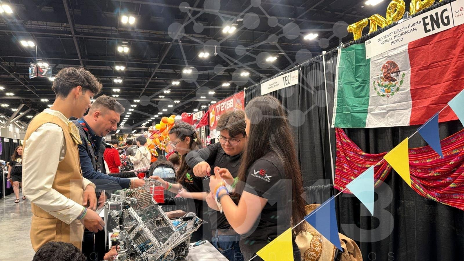 Morelia, Michoacán, 22 de abril de 2026.- Las y los alumnos del Colegio de Estudios Científicos y Tecnológicos del Estado de Michoacán (Cecytem) ya se encuentran en San Luis, Missouri, Estados Unidos, donde participa en su segundo día de actividades dentro del Campeonato Mundial de Robótica VEX 2026, una de las competencias tecnológicas más importantes a nivel internacional, que concluirá el próximo 24 de abril.