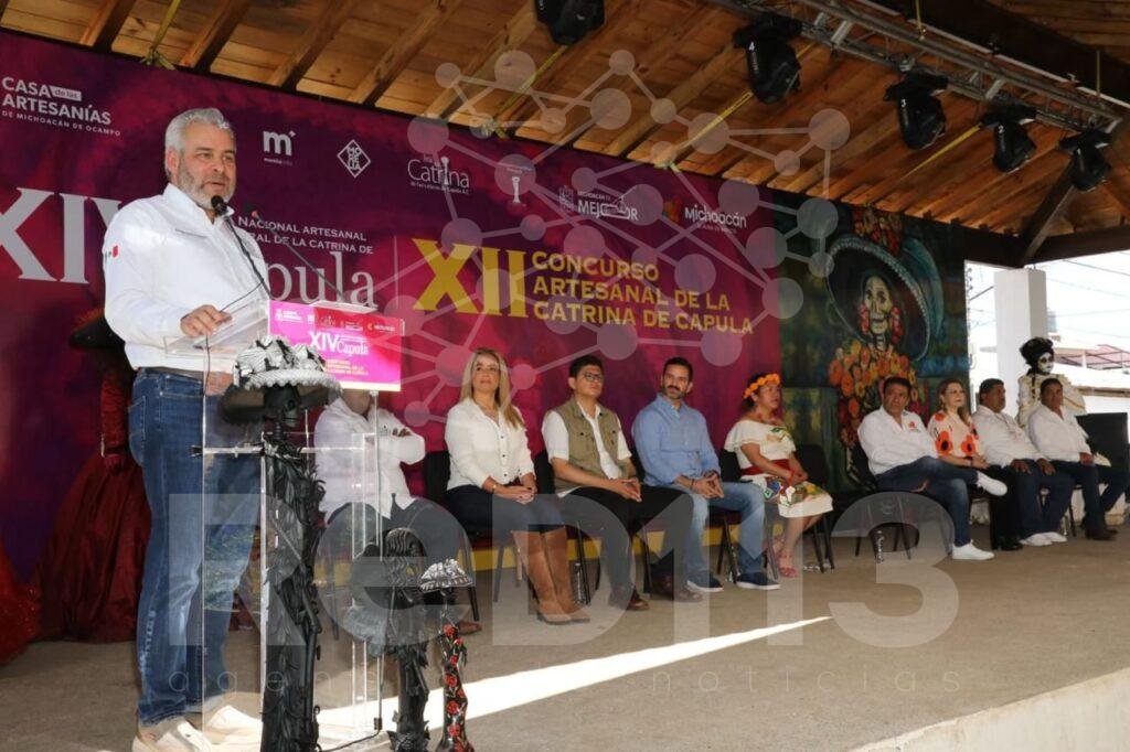 Morelia, Michoacán, 20 de octubre de 2024.- Al inaugurar la edición 14 de la Feria de la Catrina de Capula y entregar los reconocimientos del 12 Concurso Artesanal de la Catrina de Capula, el gobernador Alfredo Ramírez Bedolla destacó que este evento se ha consolidado como uno de los más importantes en los últimos 50 años.