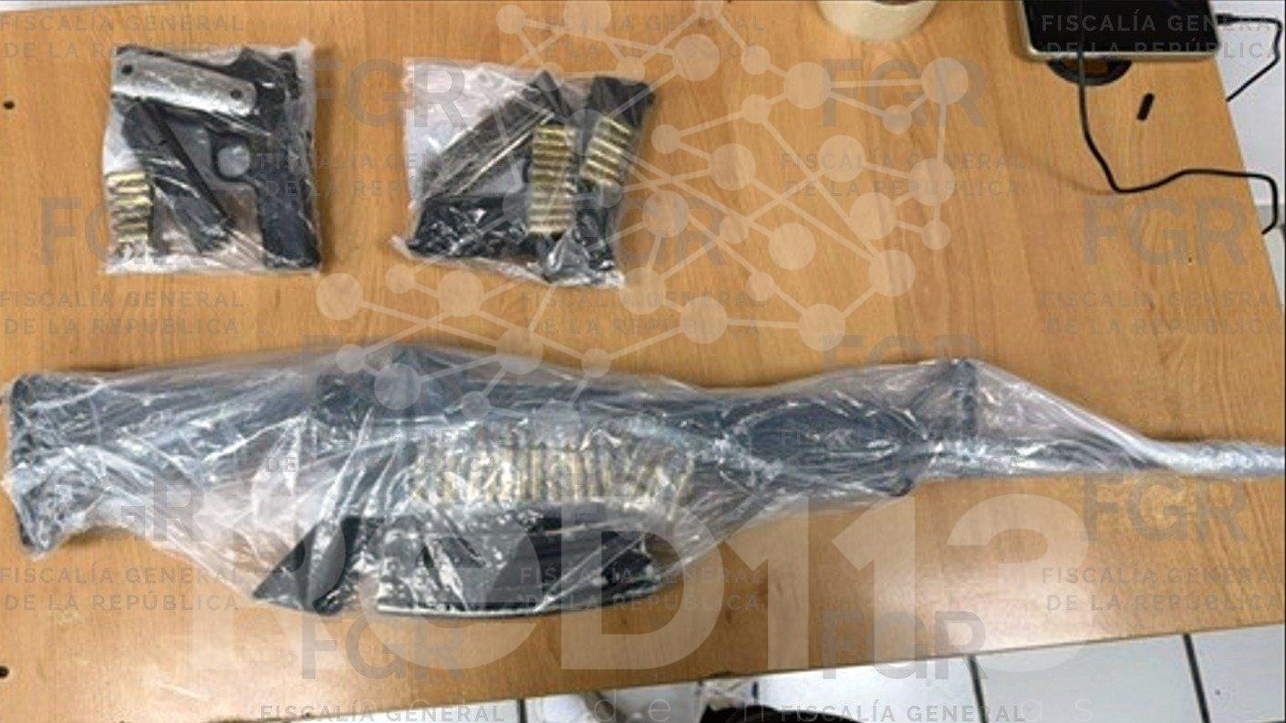Al momento de la detención, las autoridades aseguraron un arma de fuego tipo fusil, un cargador y 28 cartuchos útiles, un arma de fuego tipo escuadra, con un cargador y ocho cartuchos útiles, un arma de fuego tipo escuadra, un cargador y 16 cartuchos.