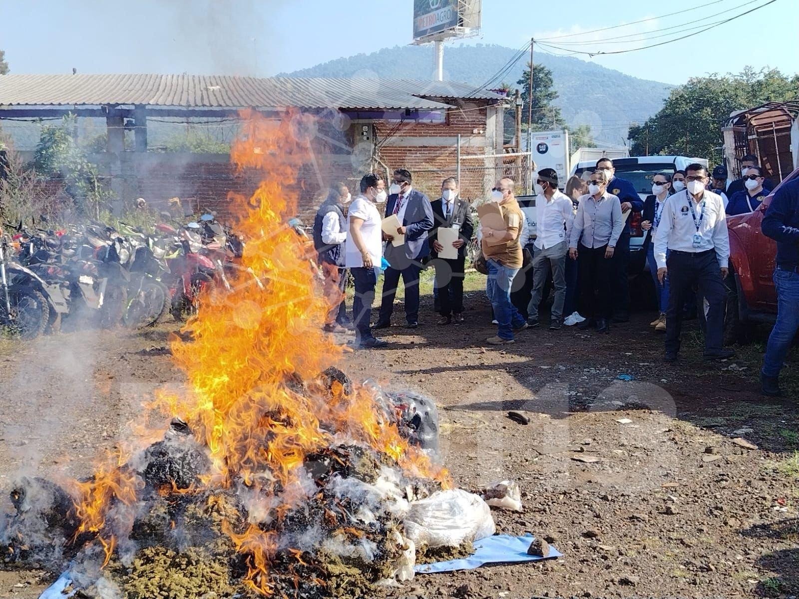 La actividad se efectuó en coordinación con la Contraloría de la FGE, la Fiscalía Regional de Uruapan y la Coordinación General de Servicios Periciales, en estricto cumplimiento a los protocolos establecidos para el manejo y disposición final de sustancias ilícitas.