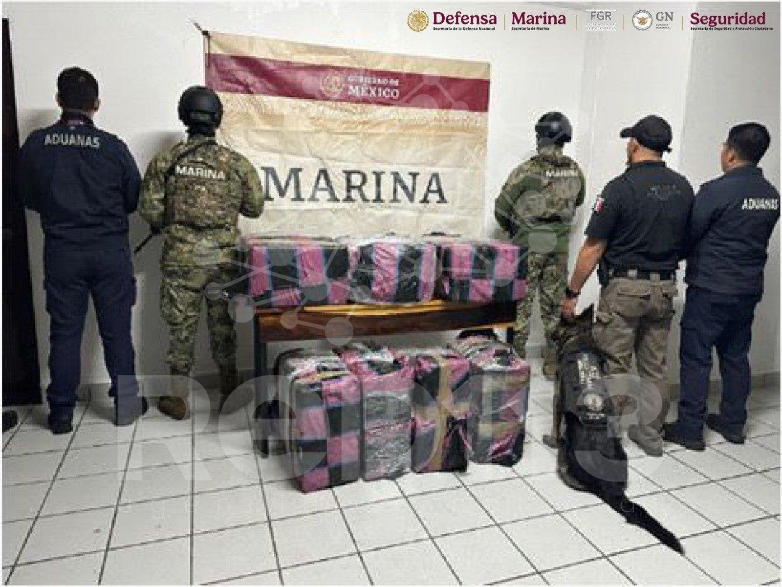 -Al realizar recorridos de inspección, personal de la Secretaría de Marina, en coordinación con la Aduana Marítima, aseguró aproximadamente 300 paquetes de presunto clorhidrato de cocaína al interior de un contenedor en las instalaciones del Recinto Portuario de Ensenada, Baja California.