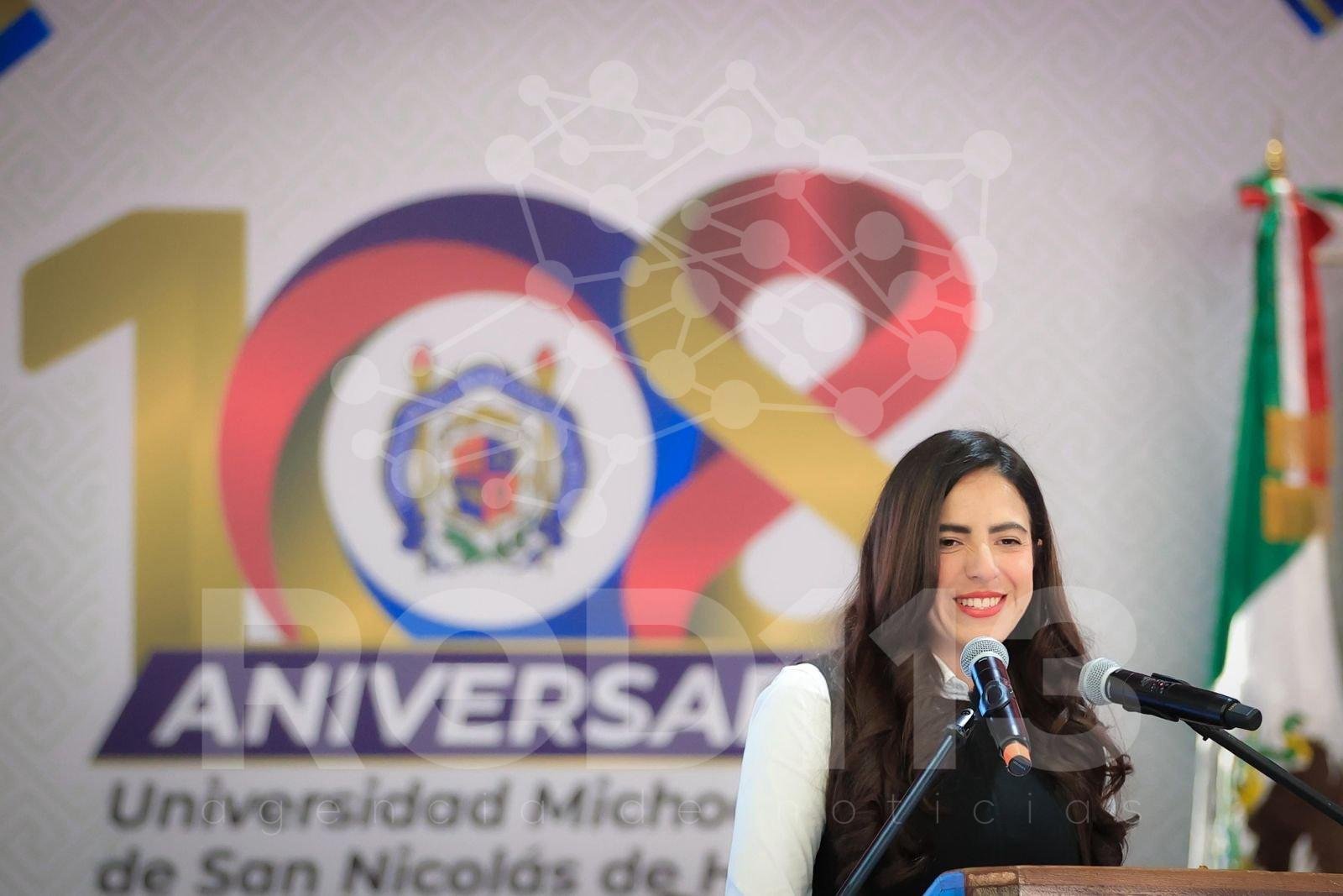 Giulianna Bugarini destaca que la UMSNH llega a sus 108 años con una reforma que le da certeza y futuro