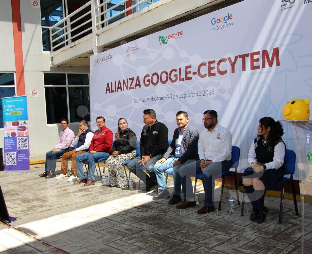 Morelia, Michoacán, 23 de octubre de 2024.- Con la donación de 25 mil becas para estudiantes y docentes, además de capacitación y certificación de cursos para la comunidad del Colegio de Estudios Científicos y Tecnológicos del Estado de Michoacán (Cecytem), el subsistema educativo realizó una alianza con Google México.