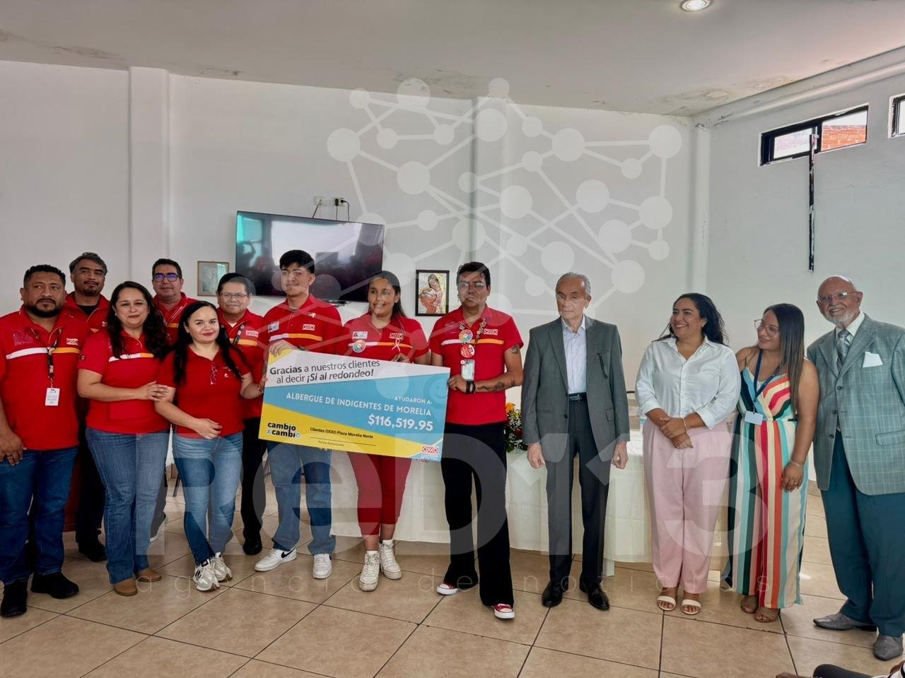 Morelia, Michoacán, 23 de octubre de 2025.- En un esfuerzo conjunto por fortalecer la labor asistencial en Michoacán, Grupo Oxxo a través de su programa “Cambio por Cambio”, entregó un donativo al Albergue de Indigentes de Morelia IAP, institución que atiende diariamente a 50 personas adultas mayores en situación de vulnerabilidad. Este apoyo fue posible gracias a la participación solidaria de los clientes que dijeron sí al redondeo.